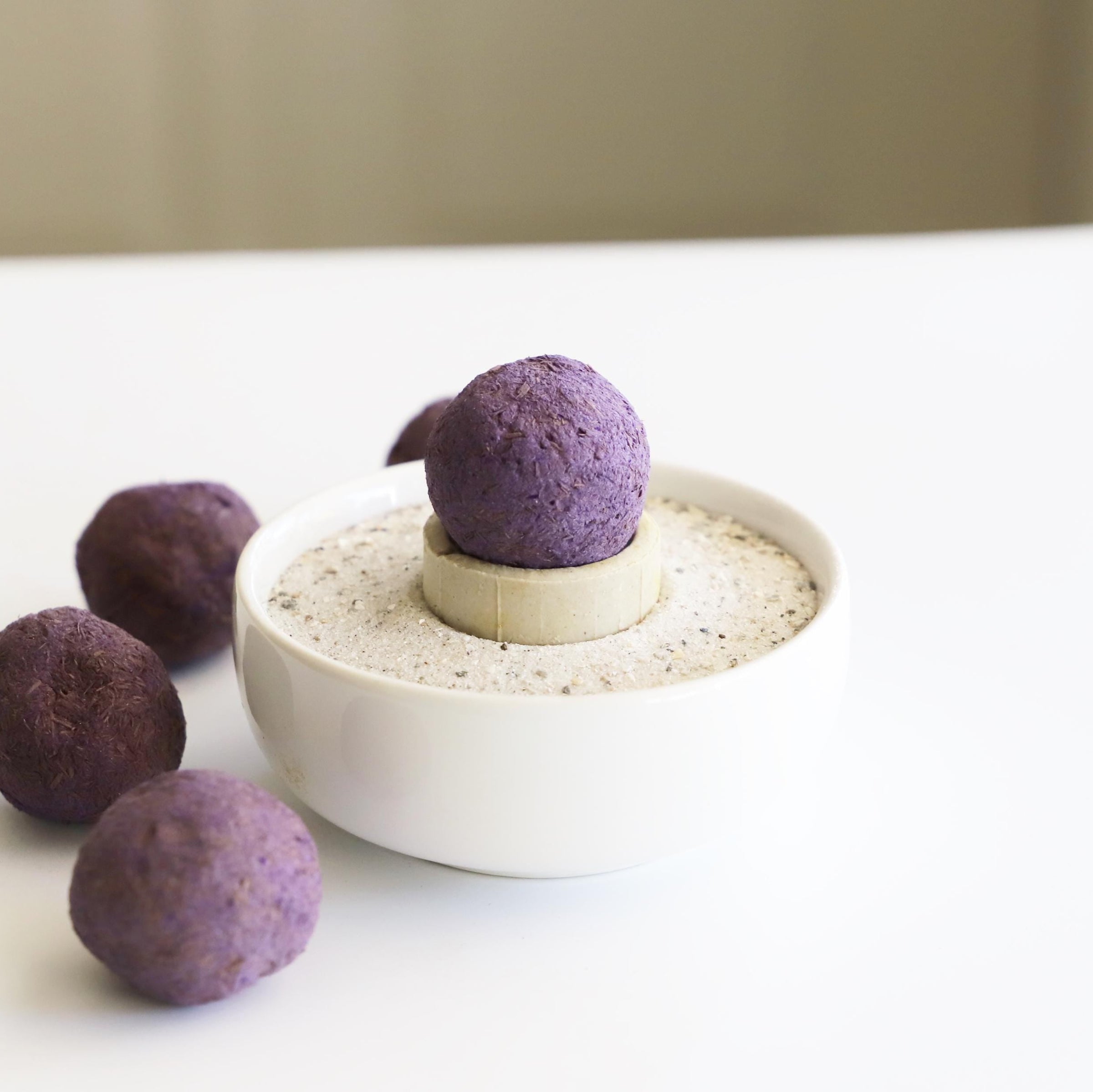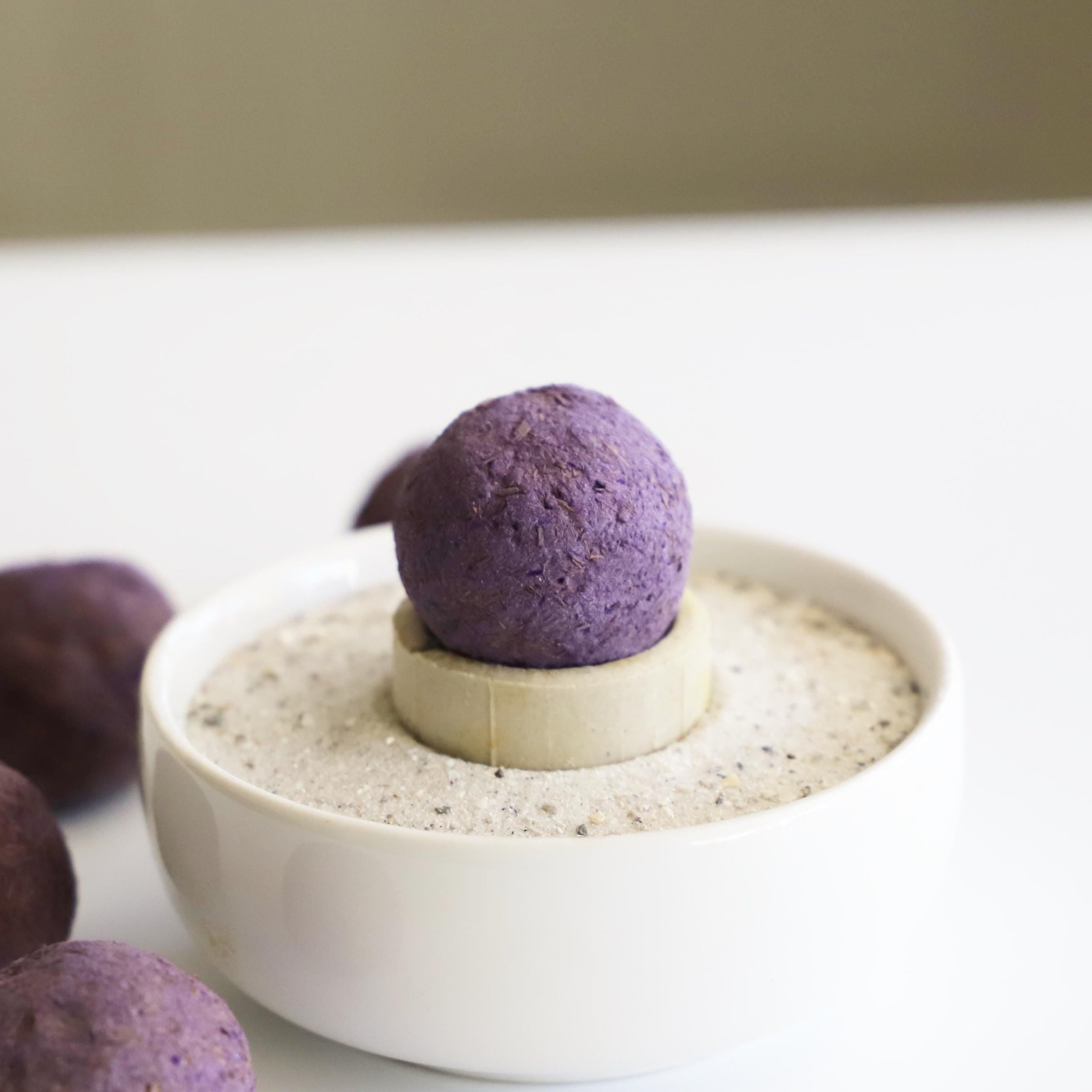 Lavender incense balls are self-lighting and burn without charcoal. Made from herbs, fragrance, and traditional incense materials, each ball ignites directly with a flame and gently smolders.