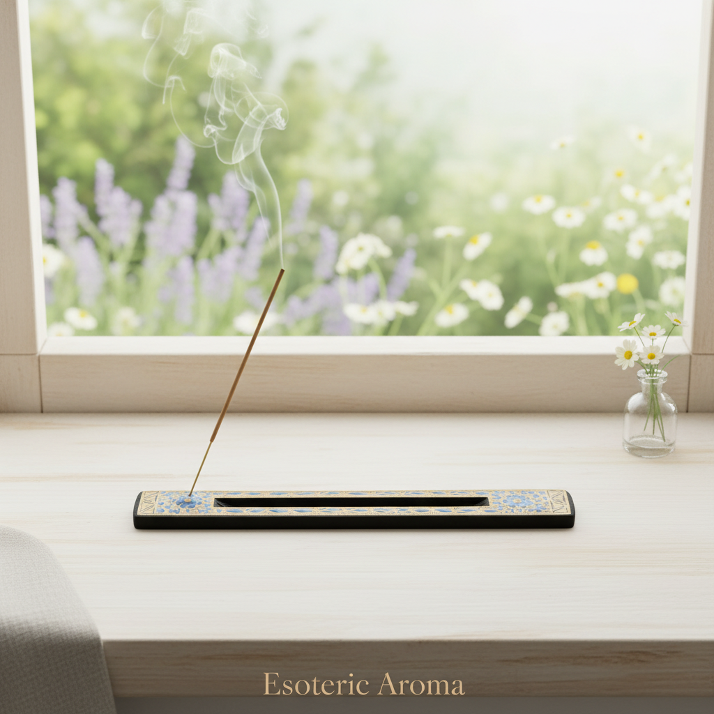 The elongated structure includes a center channel designed to hold one standard incense stick while collecting ash neatly along the surface.