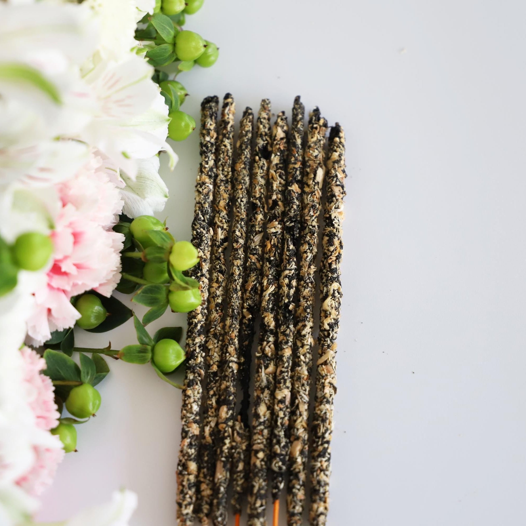 Light the tip of one stick until it glows, then gently blow out the flame. Place in a heat-safe incense holder and allow the crisp, herbal-resinous smoke to fill your space. Use during ritual work, meditation, or whenever you want to refresh the energy around you.