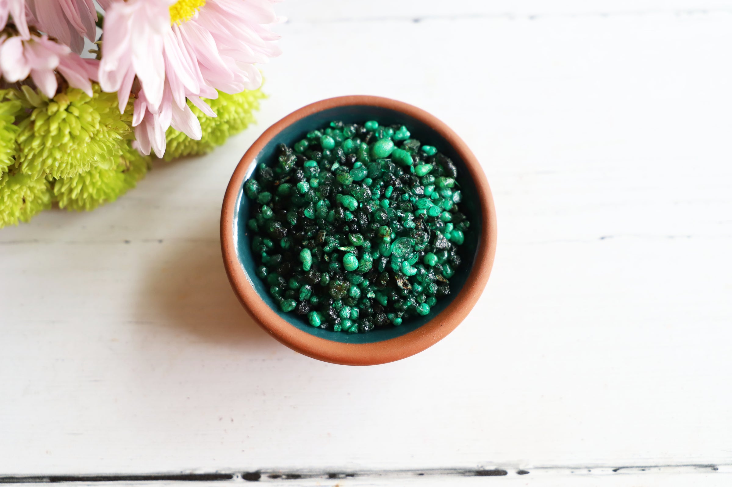 Tree Resin in a bowl with flowers around it