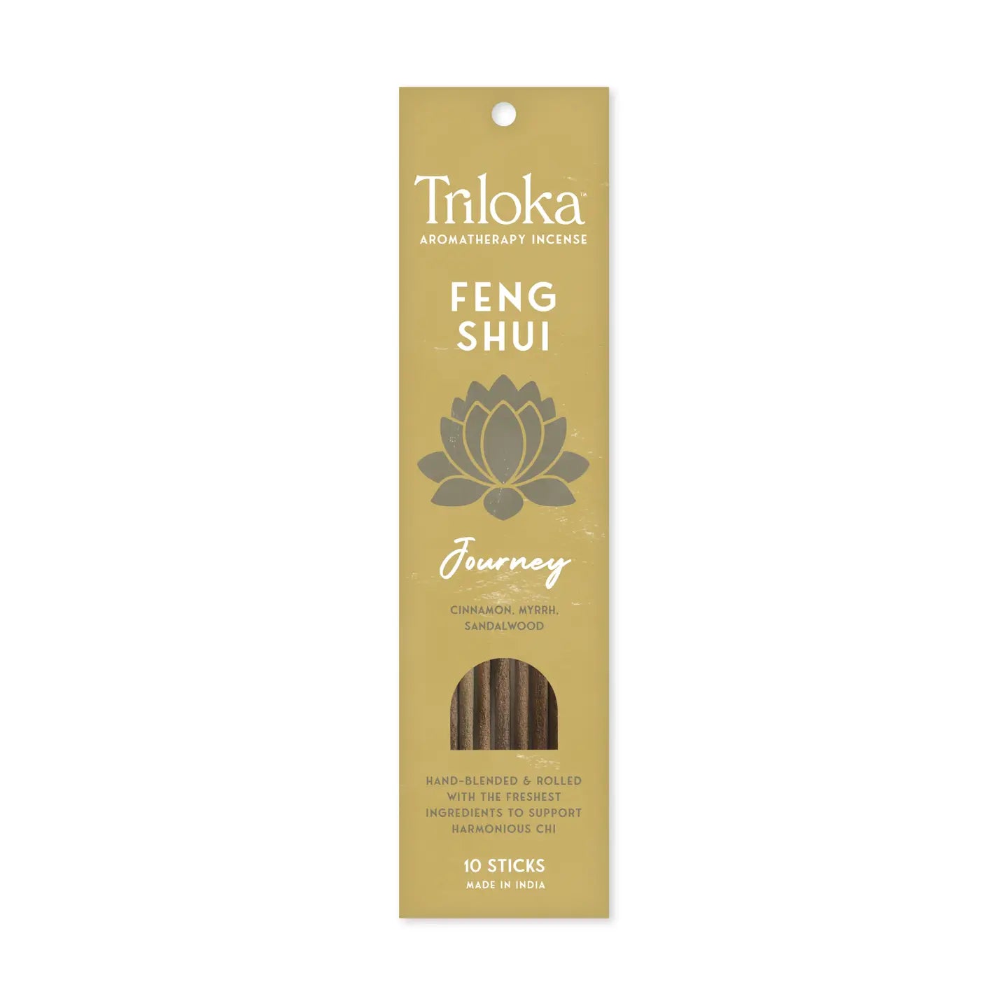 Triloka Feng Shui – Journey Incense combines cinnamon, myrrh, and sandalwood for a fragrance that’s warm, centering, and spiritually empowering. This sacred trio supports transitions, grounding, and self-discovery — guiding you through change with comfort and strength.
